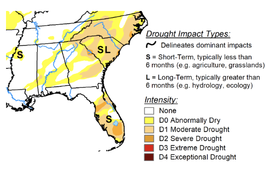 The Southeast region is much dryer this spring than the same time last year